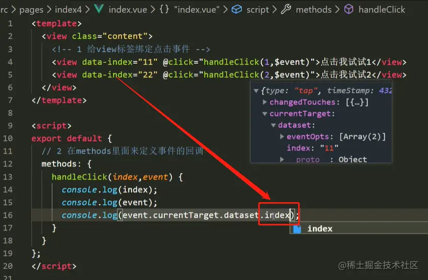 3、在标签的属性上通过 :data-index= '数据' 来使用。