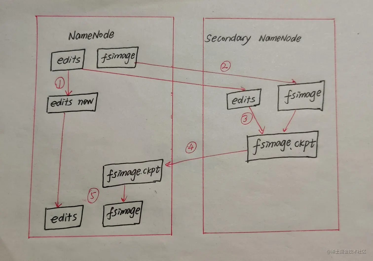 4、Secondary NameNode将新生成的fsimage.ckpt文件复制到NameNode 节点。