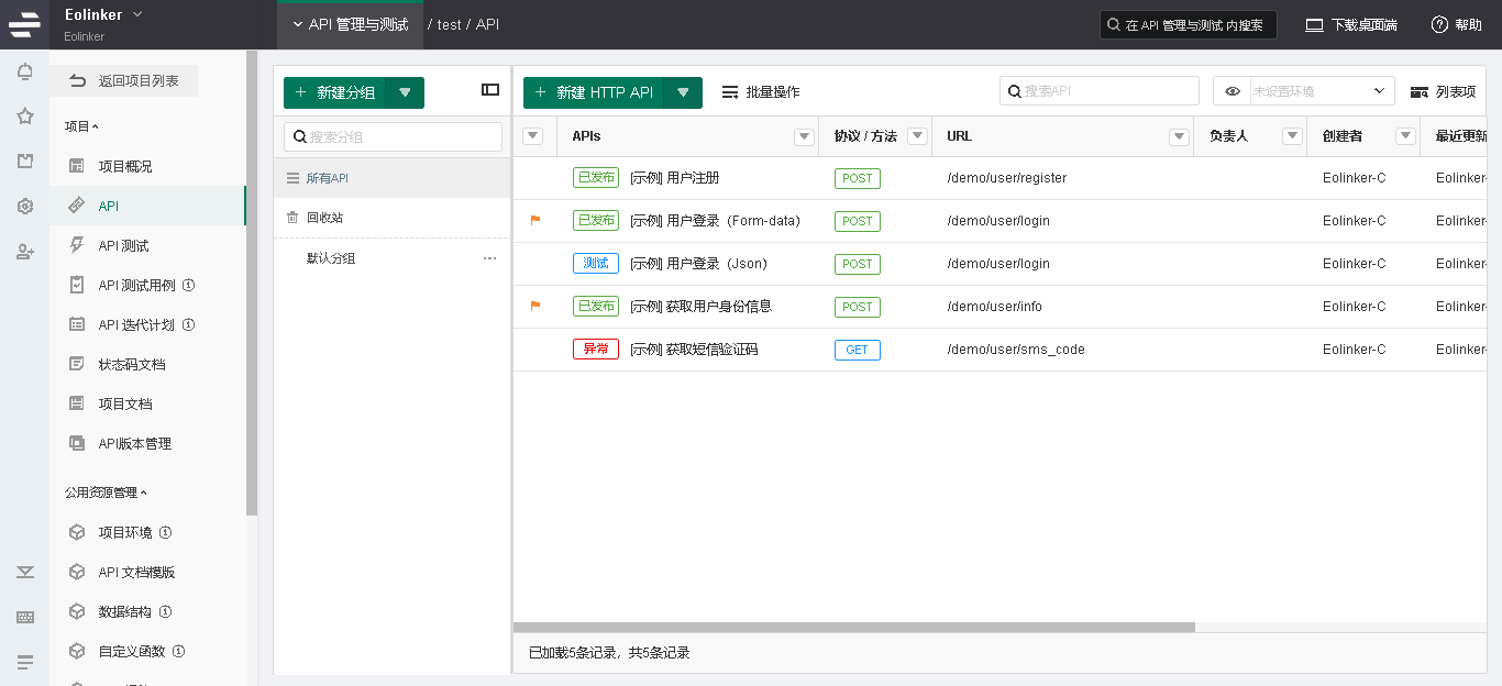 此外,提供一个可记录自身信息的API文档,对开发人员来说是有益的,它可以让开发人员快速的了解API的作用。例如您可以将API规范等信息保存在Eolinker中。Eolinker是一个统一接口管理平台,可快速导入API并生成API文档。当API文档完善后,还需要围绕它们进行一些良好的测试。