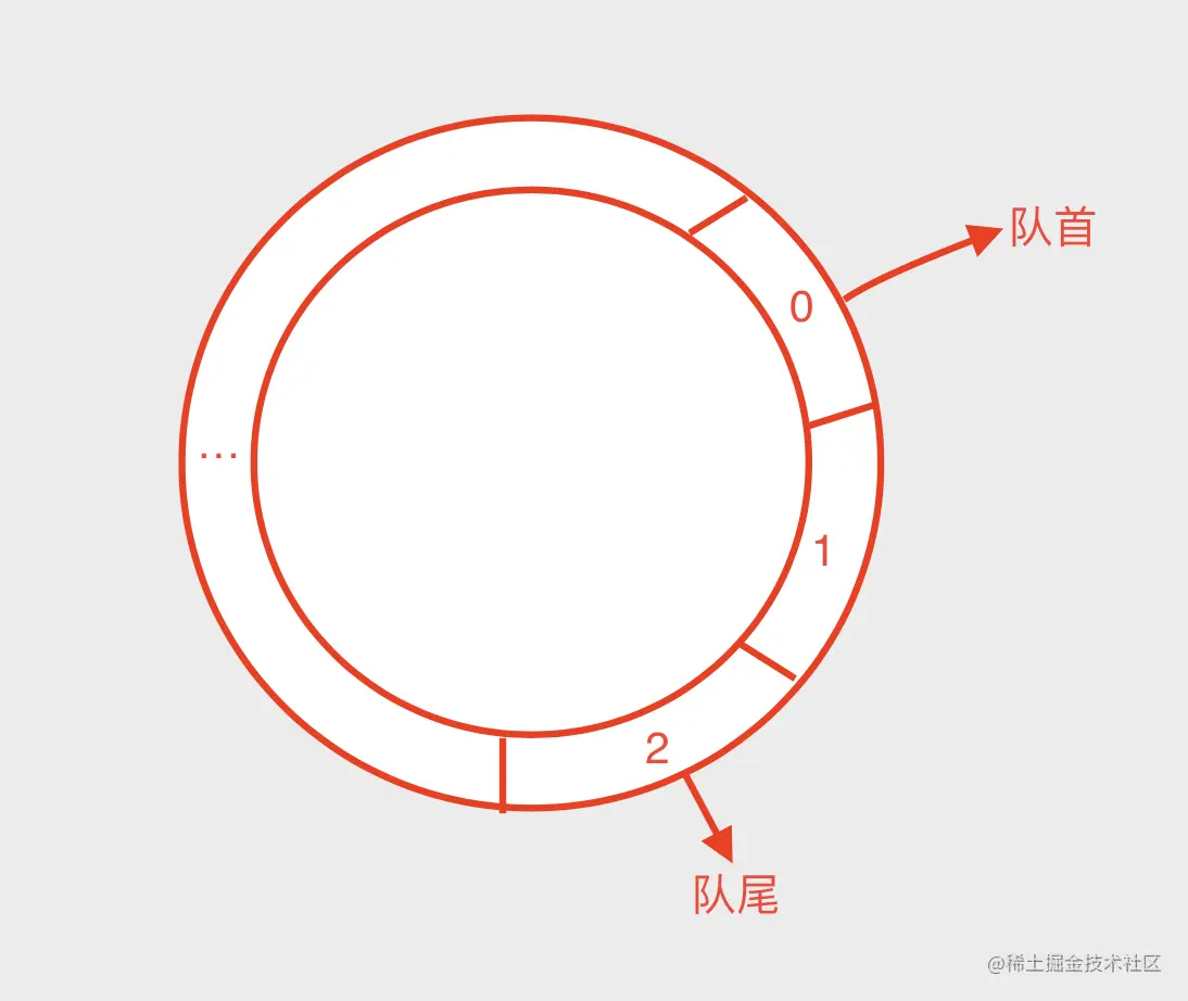 由于是环形结构,判断队列为空的时候判断两个指针是否已经相遇了,如果相遇,则队列为空,结束,否则队首元素自增,通过取余法把索引映射到数组的对应位置出队,其实就是剔除到队首->队尾这边区间之外