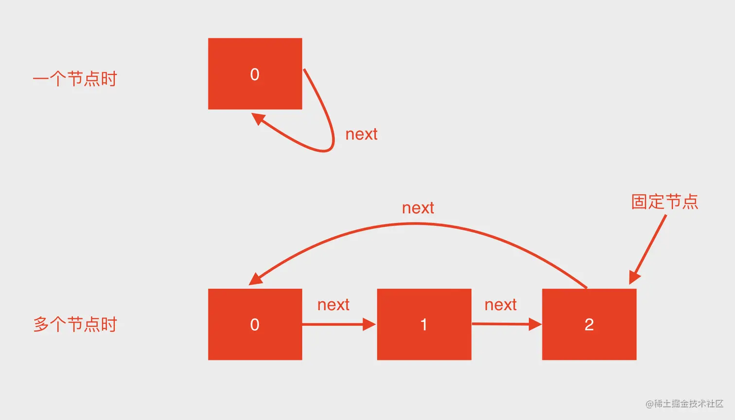queue = node->next = node; //一个节点尾指针指向自己