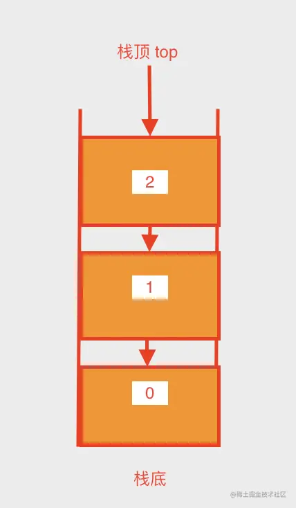 栈的特性就是先进后出,指针入口指向栈顶