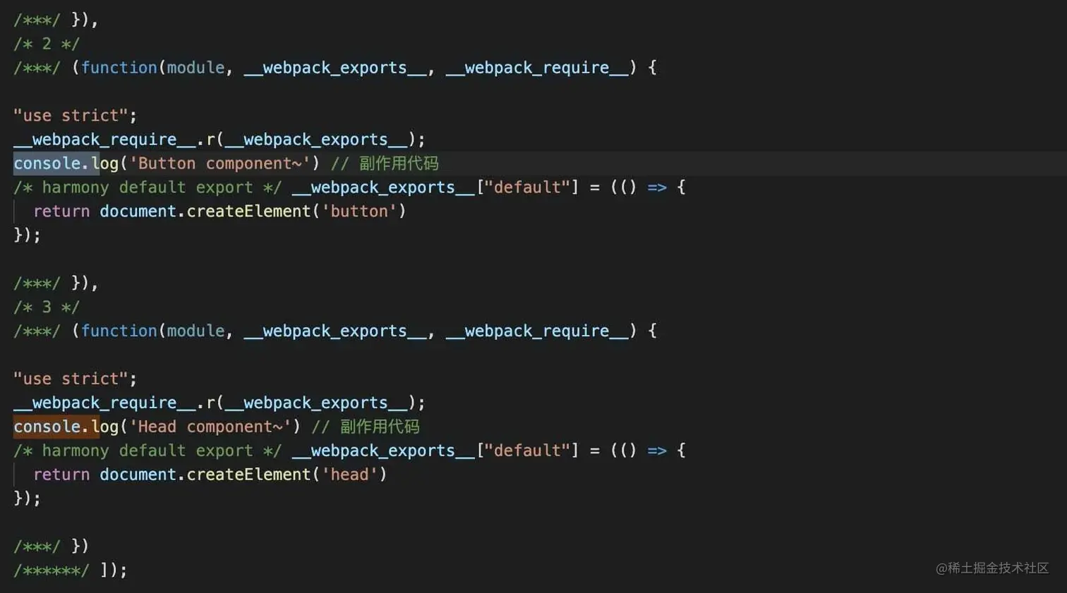 除此之外,魔法注释还有个特殊用途:如果你的 chunkName 相同的话,那相同的 chunkName 最终就会被打包到一起,例如我们这里可以把这两个 chunkName 都设置为 components,然后再次运行打包,那此时这两个模块都会被打包到一个文件中。