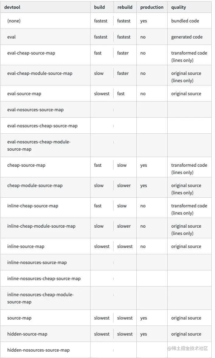 其实source-map的模式有很多种,devtool属性可选的属性非常多官网