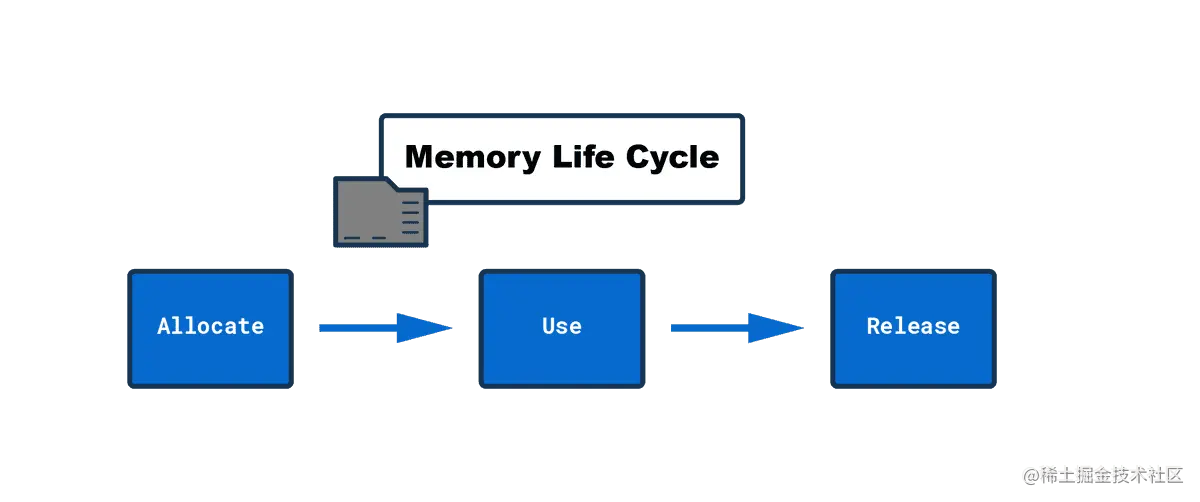 就像人有生老病死,内存也有对应的生命周期。每当赋值变量或者创建函数,内存都会经历如下的过程: