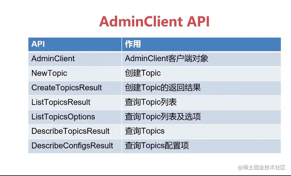 AdminClient API:允许管理和检测Topic、broker以及其他kafka对象