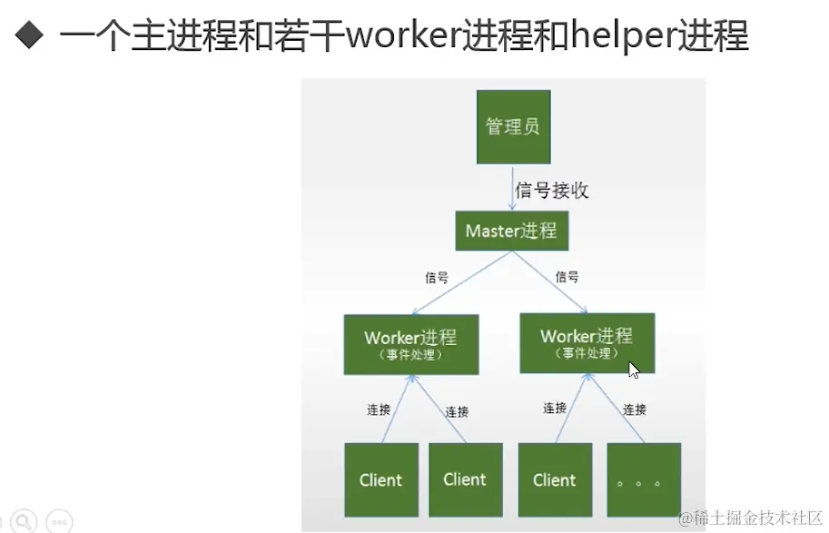 每个worker以非阻塞的方式处理多个连接,减少了上下文的次数(worker走的是reactor模式)