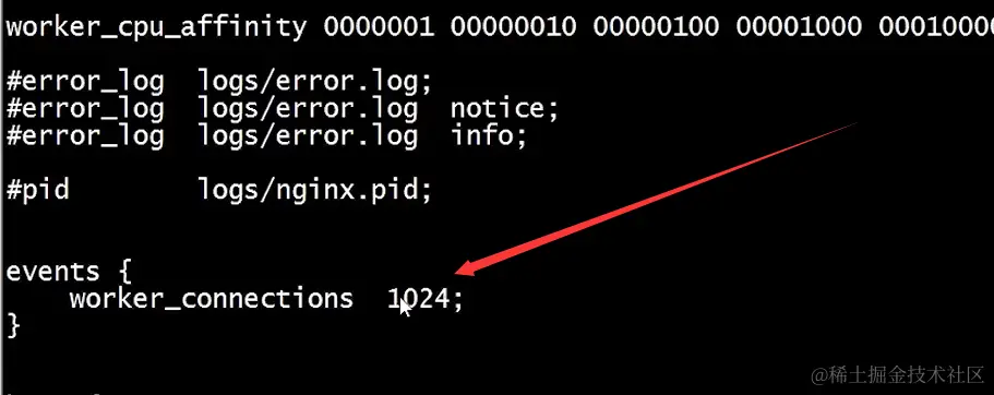 more conf中(event的配置指定了一个worker最大的连接数)