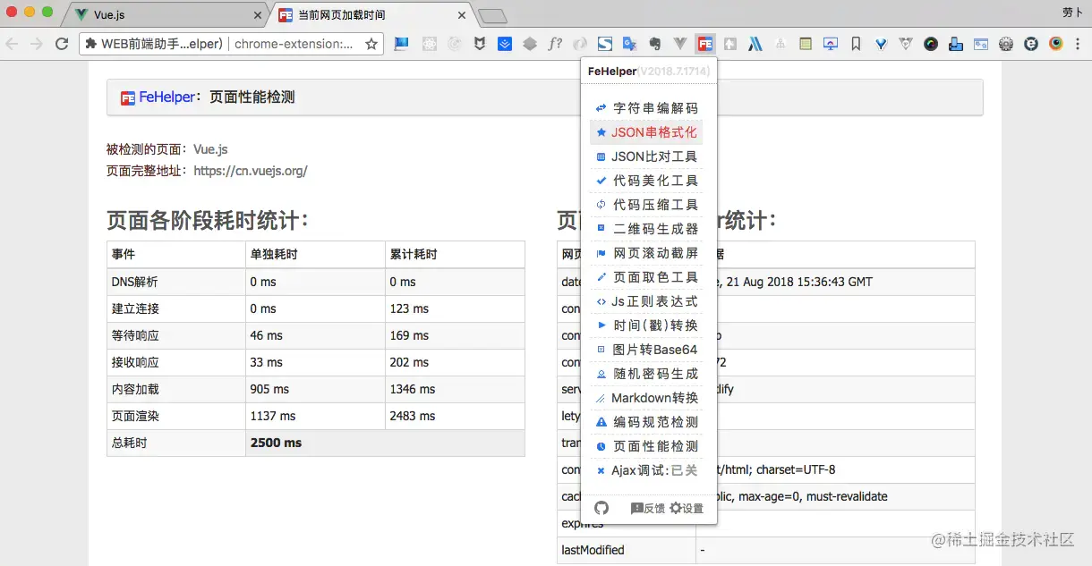 FeHelper 是百度 FE 团队开发的一款前端工具集插件,包含代码压缩/性能检测/字符串编解码等功能,能够帮助我们完成一些琐碎的开发任务。