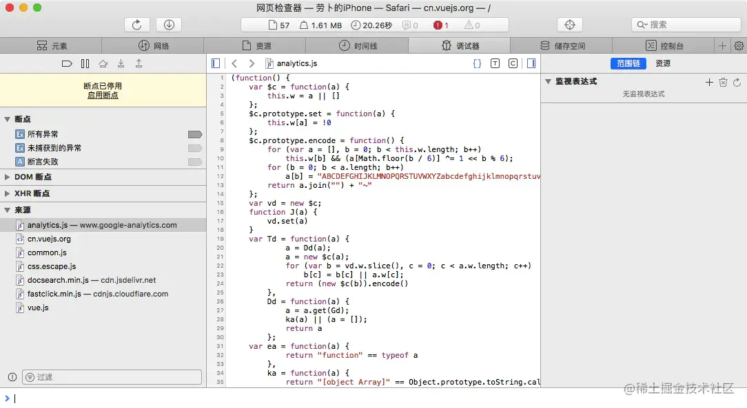 1. 打开苹果手机的 Web 检查器 (设置 > Safari浏览器 > 高级 > Web检查器),一般情况下默认是开启的