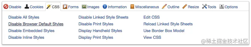 Web Developer 是一款强大的用于操作网页中各项资源与浏览器的插件,比如一键禁用 JS、编辑 CSS、清除 Cookie 等。