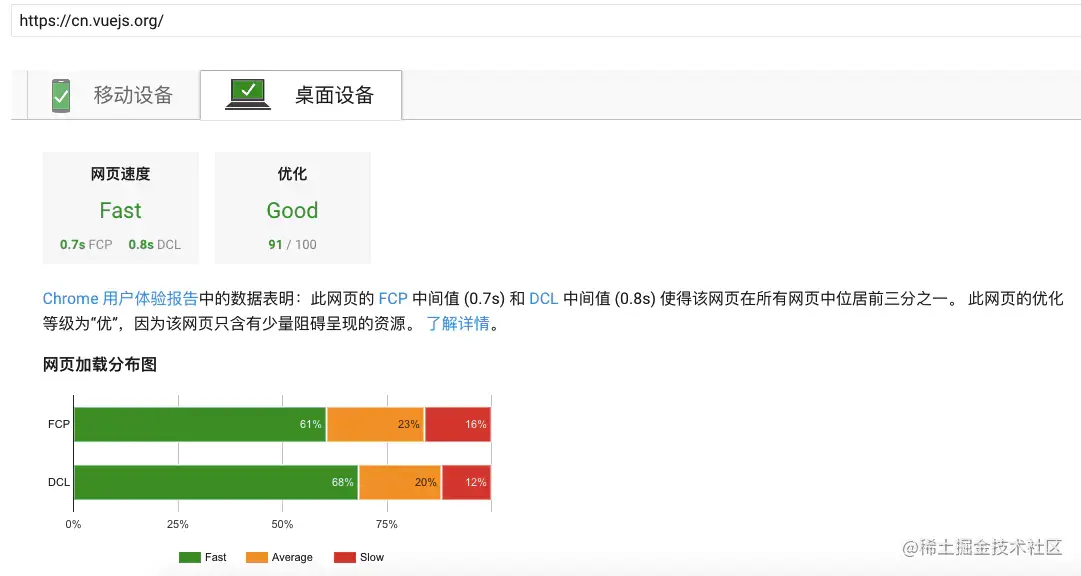 PageSpeed Insights (PSI) 是 Google 在全球范围内应用最广的开发者工具之一,其中文网页版 developers.google.cn/speed/pages… 也已经发布。作为一款专注于改进网页性能的开发者工具,它主要具有以下两个优势:真实的网页运行速度 及 优化建议。