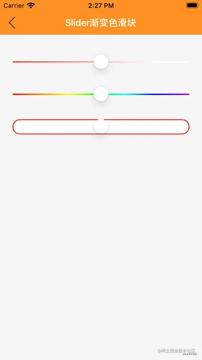 KJColorSlider *slider2 = [[KJColorSlider alloc] initWithFrame:CGRectMake(20, slider.bottom+30, kScreenW-40, 30)];