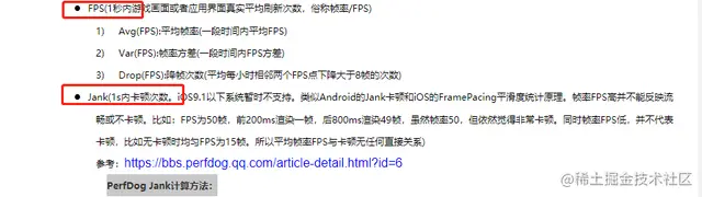 名称说明Jank1s内卡顿次数(同时满足ab,则认为一次卡顿Jank)