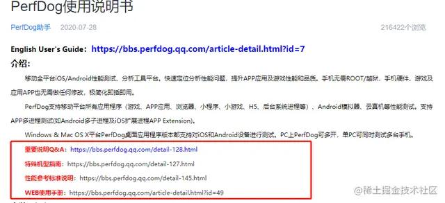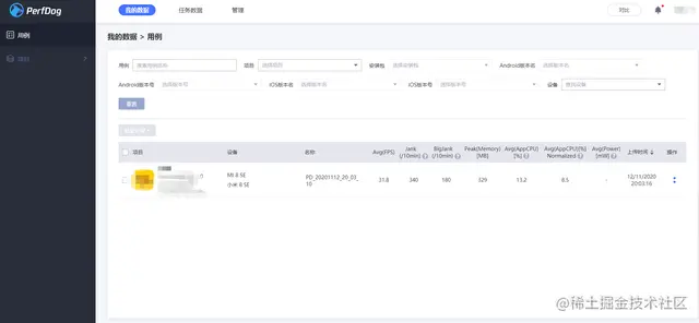 - WEB使用手册 PerfDog可以下载客户端使用, 也可以直接在官网登录后,后台直接使用, 该链接的WEB说明非常的详细, WEB使用上, 就请参考该链接吧。