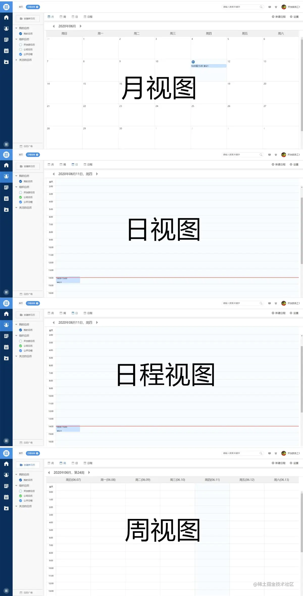 而且O2OA办公系统中的日历视图都可以多维度展现,不管你是需要月视图、周视图、日视图还是日程视图,都可以根据自己的需要进行设置。