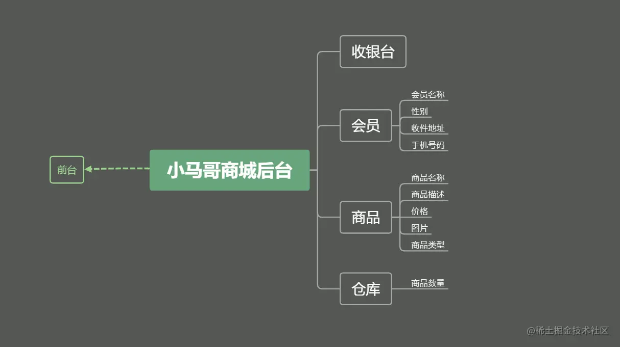 在做商城时,我们要先想好商城的基本架构。商城基础:商品、会员、收银台、仓库。