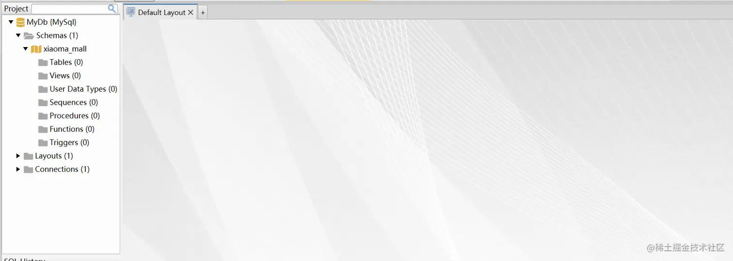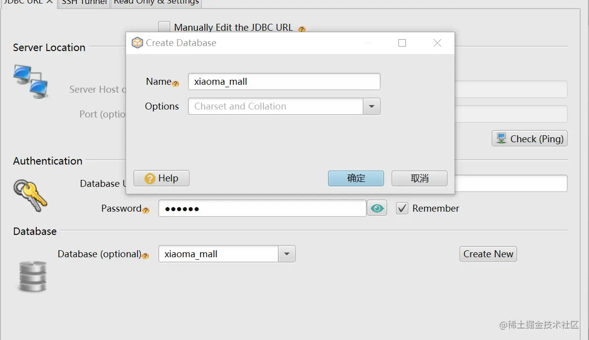 打开dbschema.exe后,选择start new project ,接着connect to the database,输入ip,端口,用户名,以及密码,接着创建一个新的数据库xiaoma_mall。