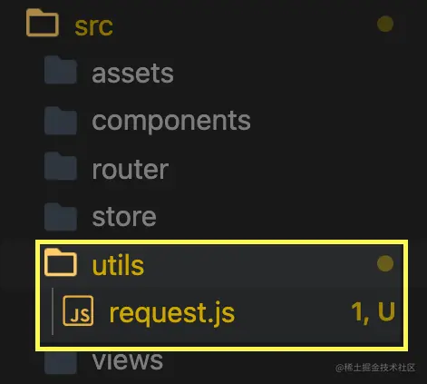 2、在vue-cli快速搭建好的vue项目根目录下src文件夹内新建request.js