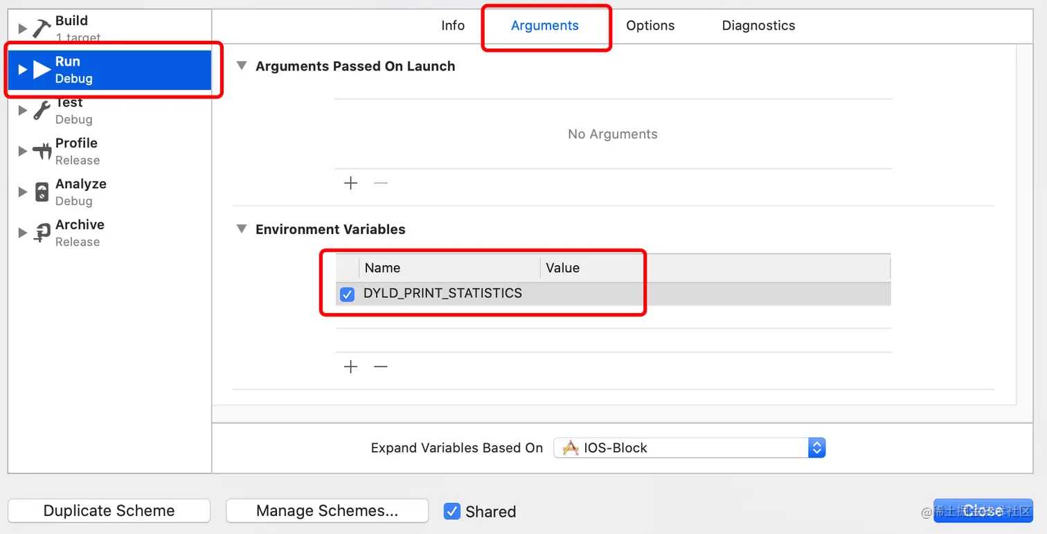 Edit scheme->Run->Arguments添加环境变量DYLD_PRINT_STATISTICS -