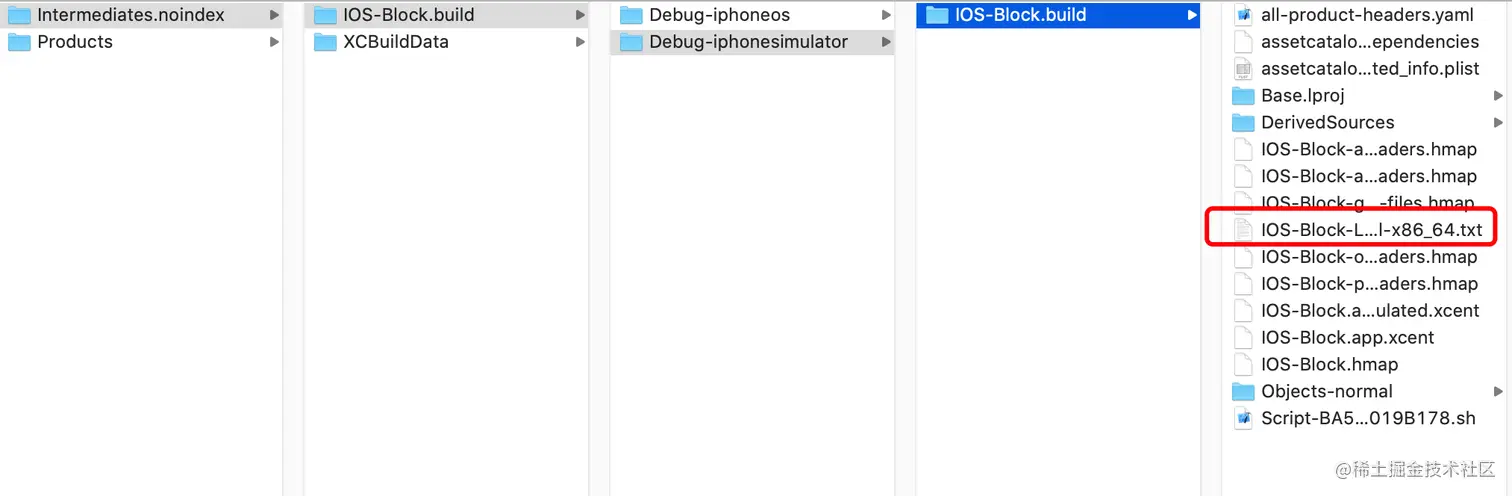 Build Settings中搜索order file,加入./test.order - 再次编译后,我们按照上面的路径打开.txt文件