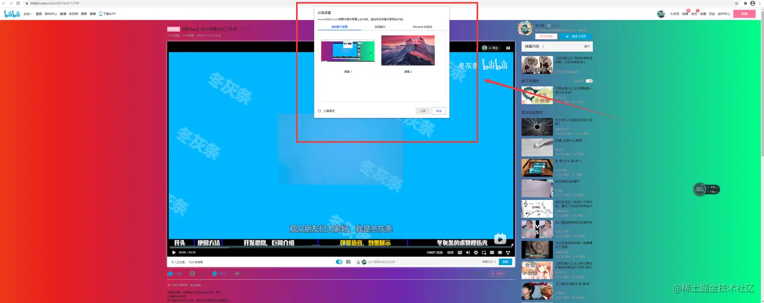 但这段代码运行后,需要用户同意分享音频,授权给浏览器才行。