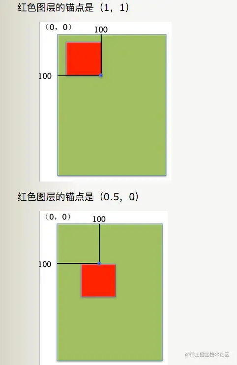 假设红色图层的position是(100,100)