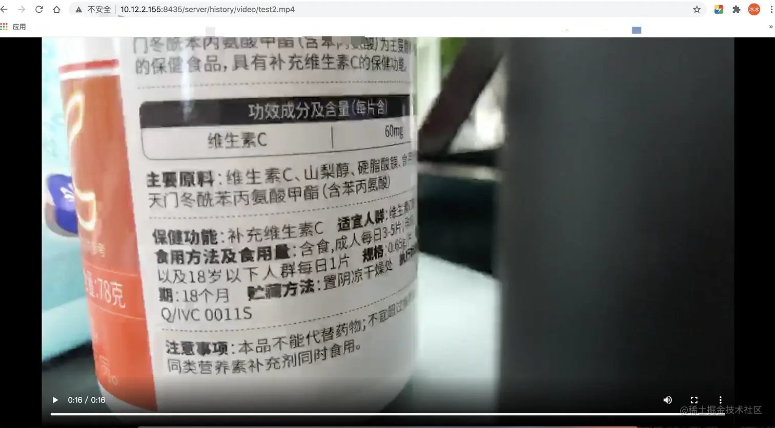 启动项目,在url输入:http://{{IP}}:{{port}}/server/history/video/test.mp4