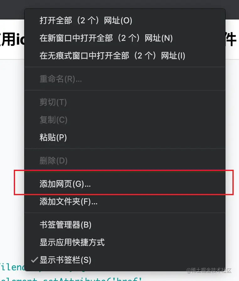Chrome浏览器:在收藏栏点击鼠标右键,选择添加网页