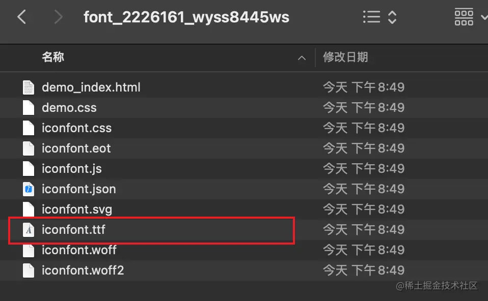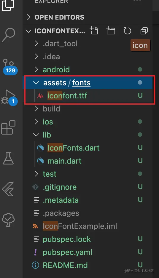 将下载好的zip包解压缩,复制其中的iconfont.ttf文件至你的flutter项目中,比如flutter项目名称/assets/fonts/内
