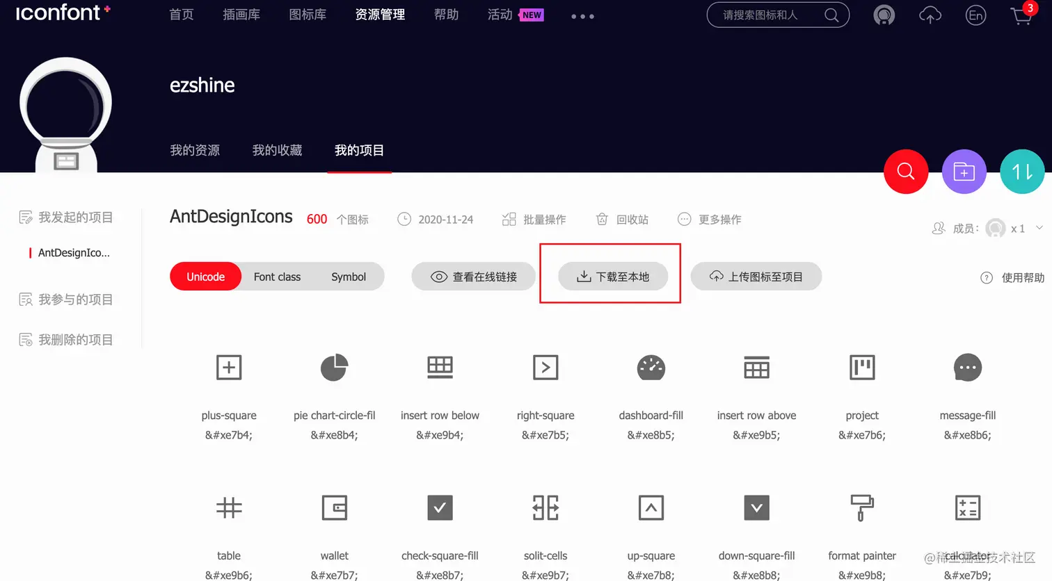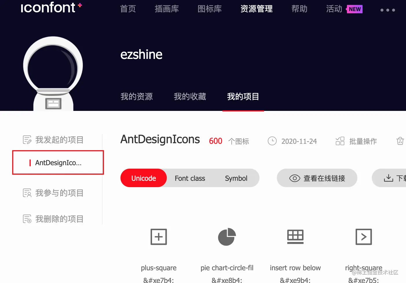 每个图标下面都标记出了这个图标对应的unicode编码,所以我们想用哪个图标,只要copy它的unicode编码到代码里就行了