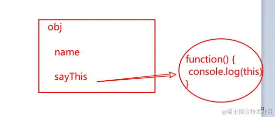 let obj = { name: "小米", sayThis() { console.log(this); } } obj.sayThis();//objsayThis是绑定在obj对象的方法,并且由obj调用,所以this指向obj