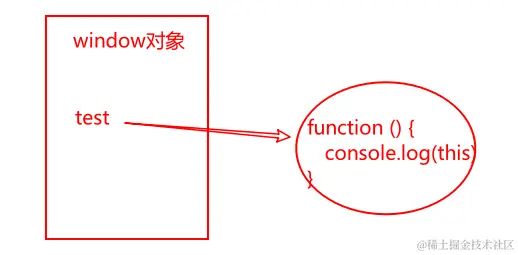 function test() { console.log(this); } console.log(window.test)//test test();//window.test();在全局作用域创建一个函数,函数调用是单独调用(没有使用xx对象.b()调用)。所以this指向window