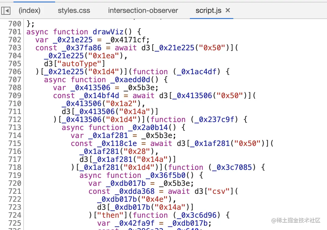 毕竟之前「可视化作品分享:第2期」里分享的第7个作品「The Inside Scoop of Ben & Jerry's」,国庆节在推特上发布,本月初想看看代码里怎么用的 GSAP 时,突然发现这才不到一个月原本能看的源码被混淆加密看不了,一开始还以为是自己这网络或解码什么出了问题,发群里一问,知道真相后也是有点震惊和受到打击,想不到还有这么一出,只能气得摔桌子,学什么可视化,不学了不学了,doge。