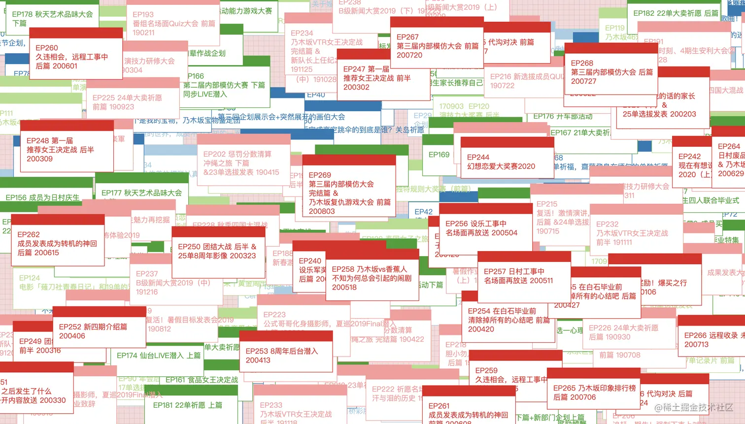 也有首次尝试用 GSAP ScrollTrigger 实现滚动交互数据可视化。理所当然的用每周都会看的乃木坂46的团综「乃木坂工事中」的b站熟肉数据进行练手。