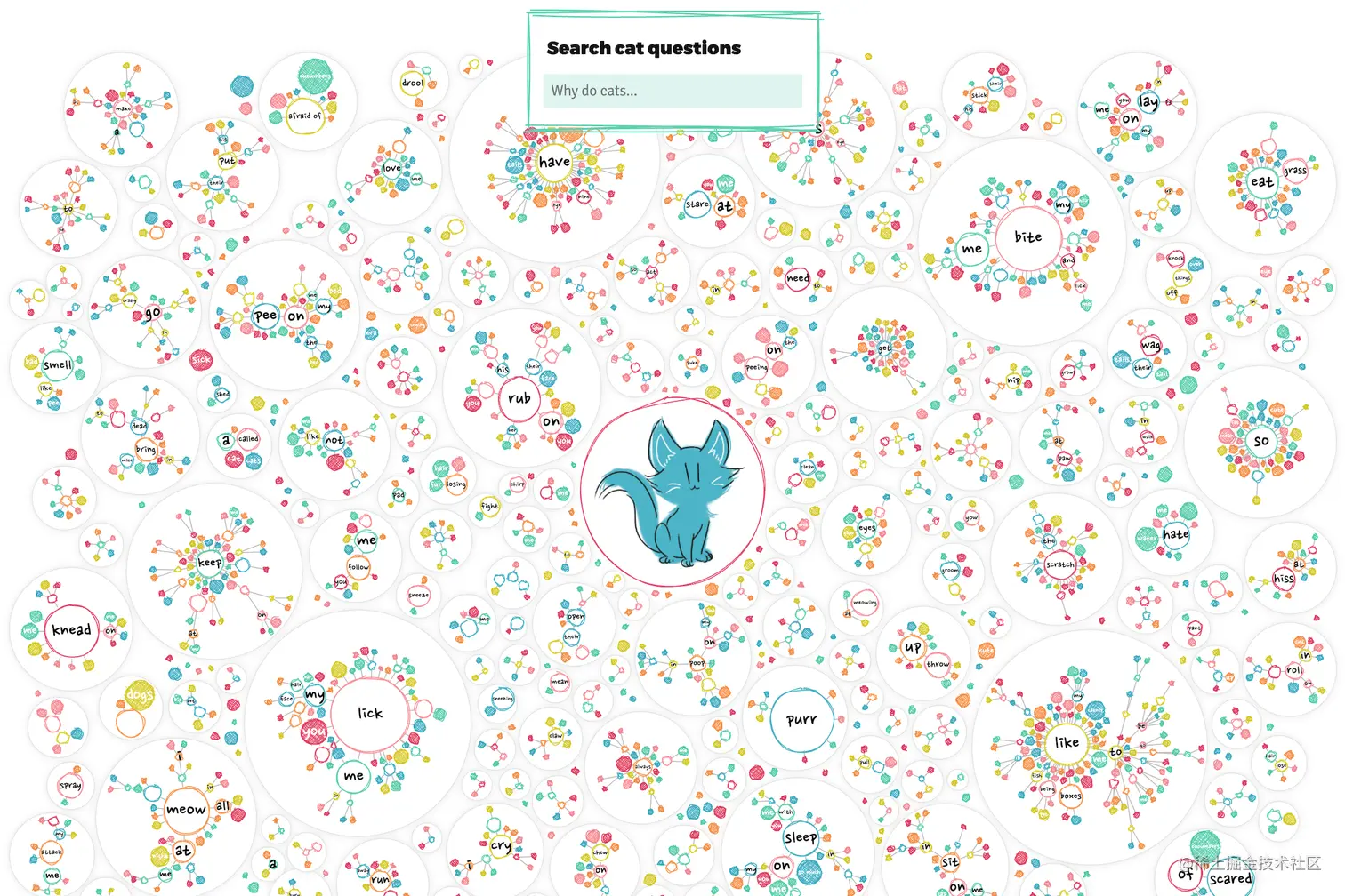 然后,就是上周群里 Michelle.L 梁同学讲到她大概5月份做平面设计/视觉传达毕设时曾看到我分享的可视化作品,然后参考了其中 Nadieh 的 Why do cats & dogs ...? 作品网站的视觉交互逻辑。