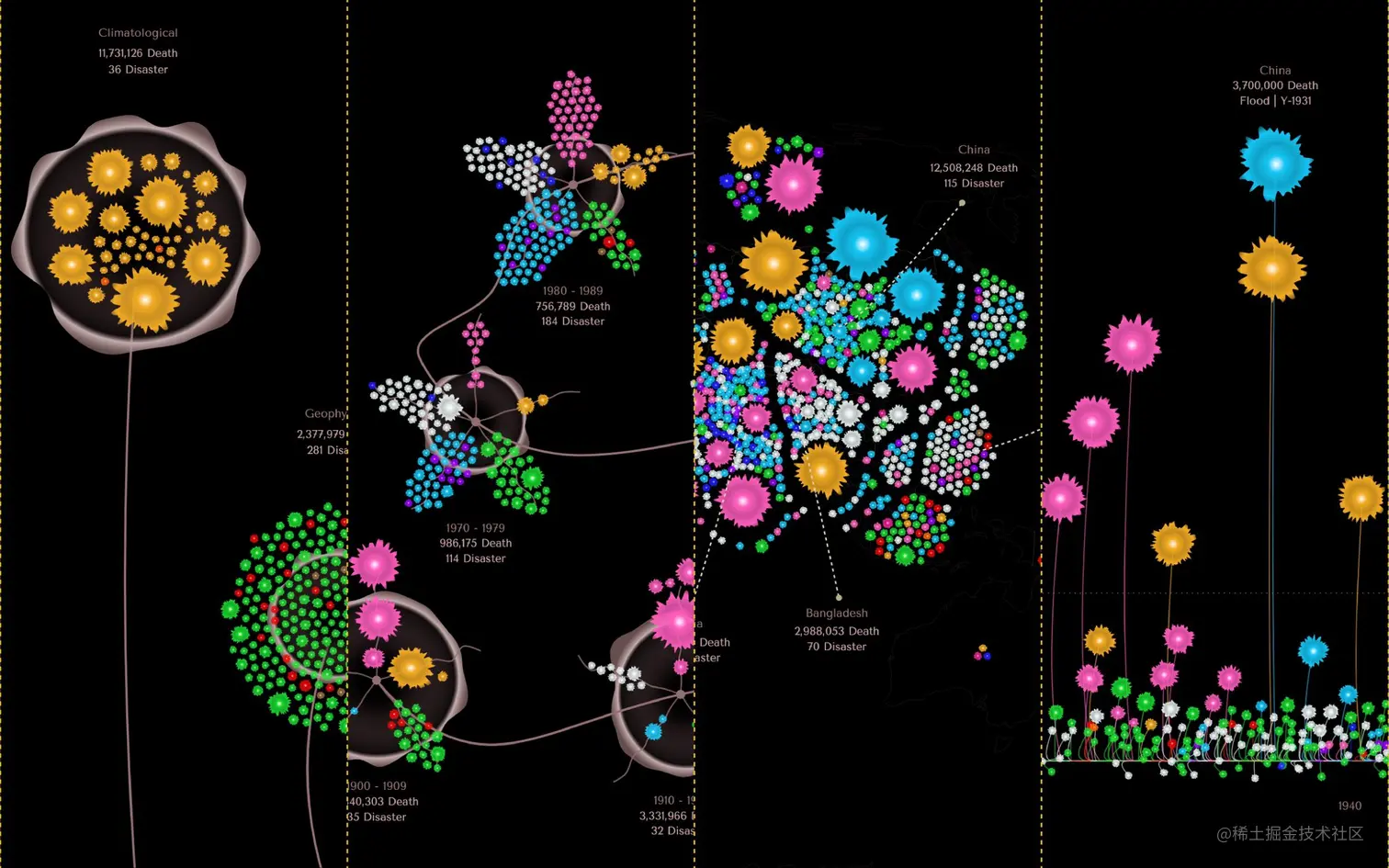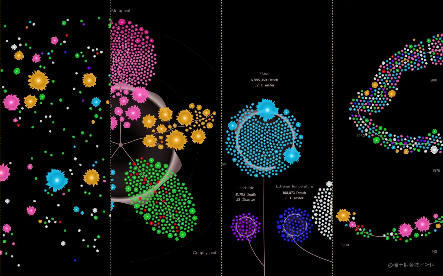 作品本身大概是关于自然灾害的,不过一直没细看,等后续出几期滚动交互数据可视化作品分享时再介绍(安排上)。说起来这回古柳立马下载了网页源码,生怕哪天回过头想学习时发现看不了。
