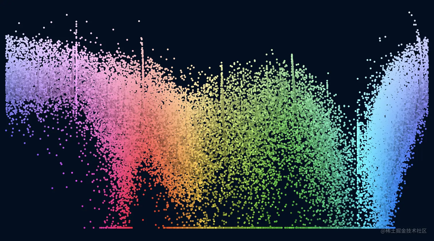 最后部分原本是打算作为本文的重点,也是重新更新文章想讲的内容,但诚如所见,写着写着也扯了不少这段时间的一些事。因而关于这个念念不忘三年之久想要做的颜色可视化的内容,关于从李子柒的130个b站视频里隔几秒抽一帧画面图片(素材近40GB大小),然后从这1万多张图片里每张提取5种主要颜色,最后对这5万多颜色数据进行可视化探索的整个流程内容就留到下一篇文章再详细介绍吧,这里先分享几张效果图,尝个鲜,希望有人感兴趣。