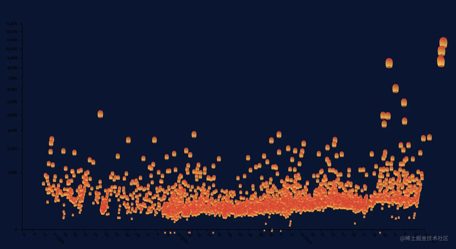 也是记不清自己居然那么早有分享过什么东西,于是搜了下微博,那会确实曾在微博与掘金发过些可视化作品,当然如今也变成了系列文章。