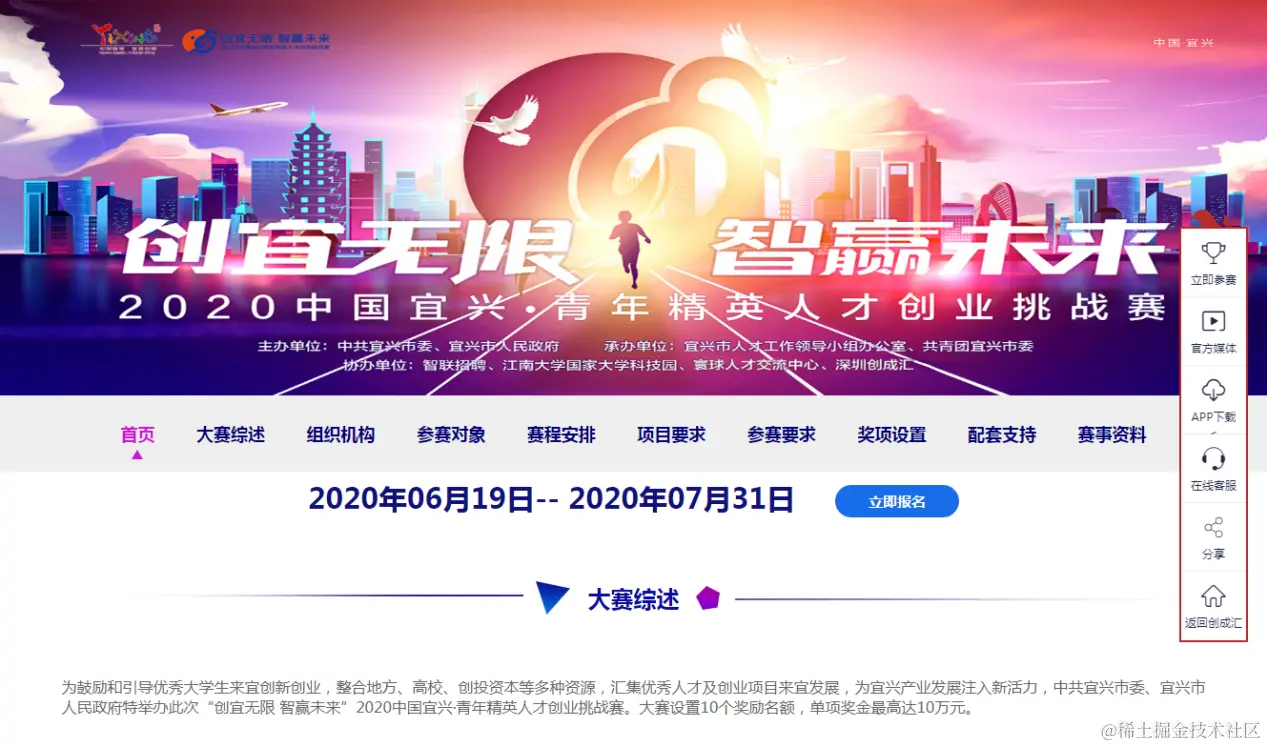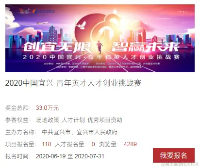 创成汇平台作为本次大赛协办单位,共为吸引118个项目在平台报名,最终遴选出36个高层次人才项目,其中15个项目成功晋级选拔赛,3个项目分获一二三等奖,其中一等奖获奖项目“石油化工环保创新技术及产业化”项目在颁奖仪式现场与宜兴环科园落地签约。