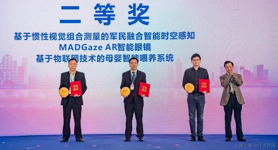 (薛皓月为获得一等奖的2个项目代表颁奖)