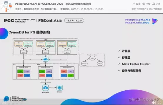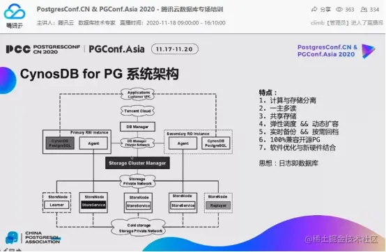 3.腾讯云数据库专家工程师邹立贤做《CynosDB for PG —— 主从架构》分享。