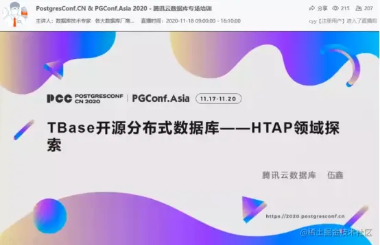 1.腾讯云数据库专家工程师伍鑫做《TBase开源分布式数据库——HTAP领域探索》分享。