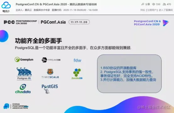 5.腾讯云数据库产品经理唐阳做《PG 可以用来干什么》分享。