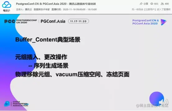 8.腾讯云数据库高级工程师张治春做《等待事件-buffer_content分析》分享。