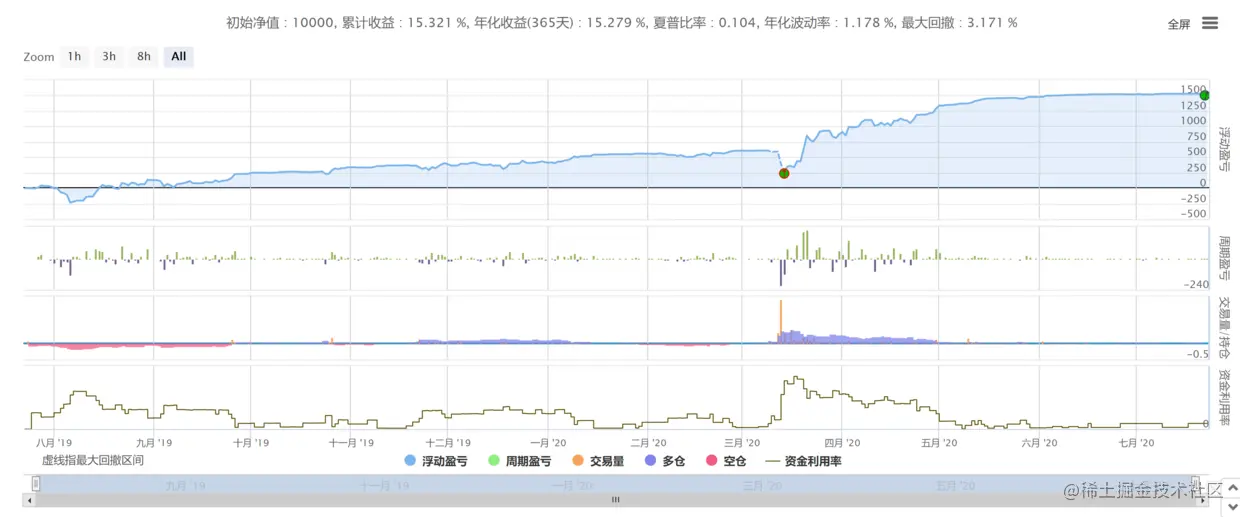 由于过去一年比特币价格一直震荡,策略取得了稳定的收益。