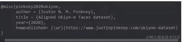 如果使用数据集,请引用为“Aligned ukiyo-e faces dataset, Justin Pinkney 2020”或一个bibtex条目:
