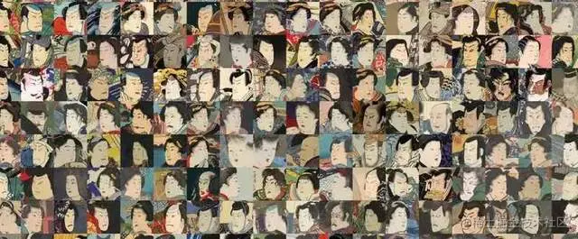浮世绘人脸数据集包含来自浮世绘照片的5209张脸部图像。图像像素为1024x1024、jpeg格式,并已根据FFHQ数据集所使用的过程进行对齐。上面是数据集中(几乎)所有图像的地图,对图像进行了绘制,以使相似的面孔看起来靠近在一起[2]。为了便于显示, 图像已缩小为256x256。