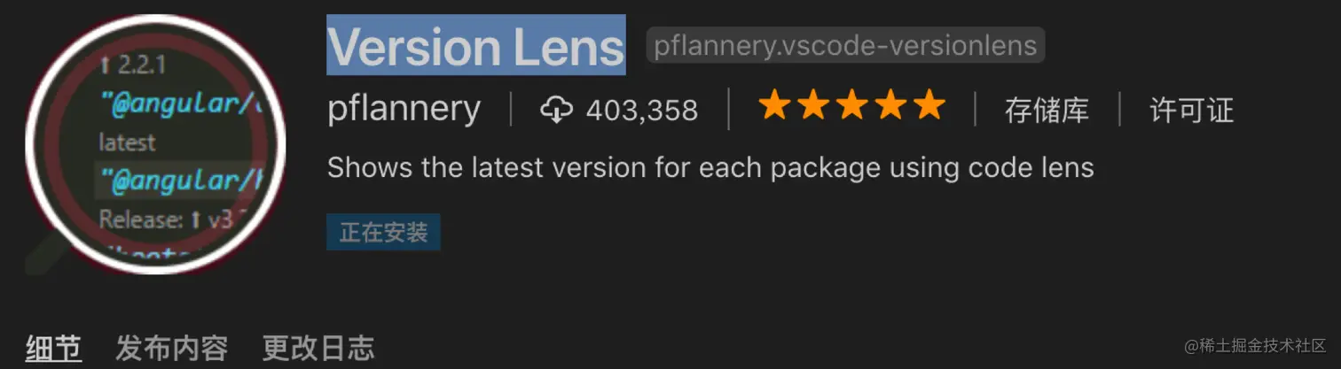 21.Version Lens(package.json文件显示模块当前版本和最新版本)