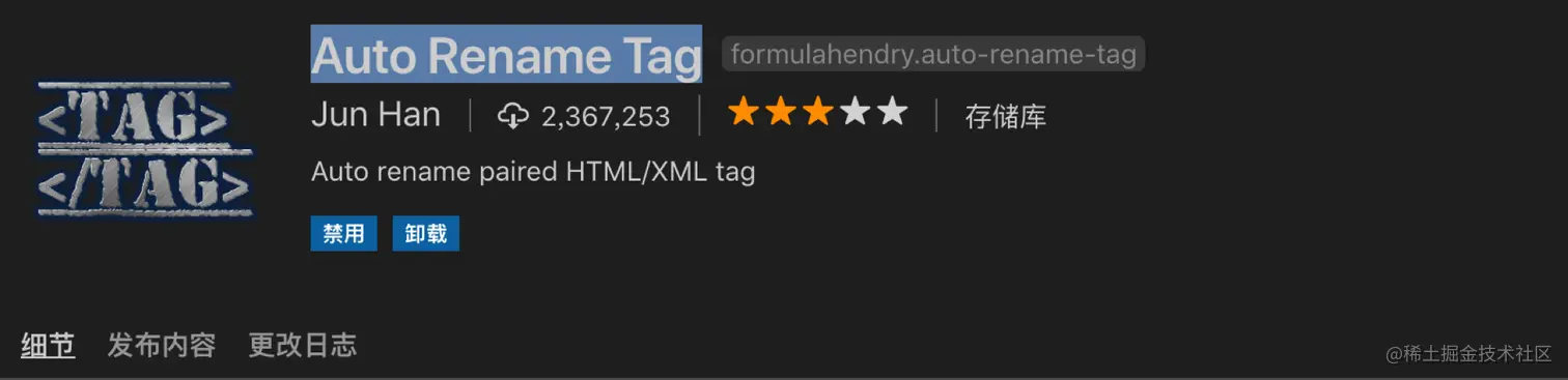 3.Auto Rename Tag (修改标签闭合标签也跟随修改)